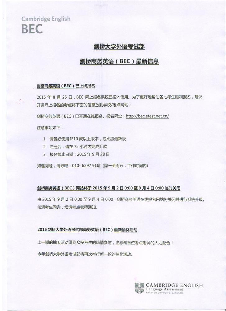 安徽财经大学BEC考点2015年下半年BEC考试报名须知.doc
