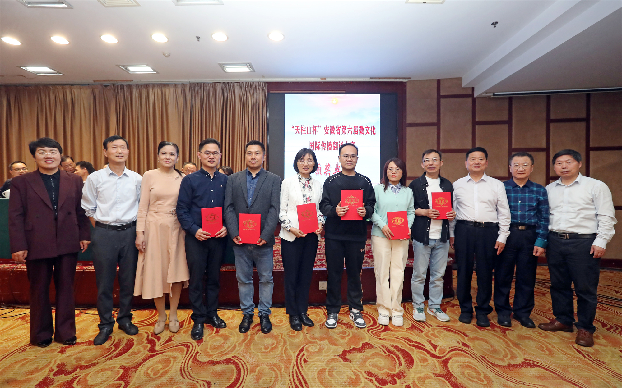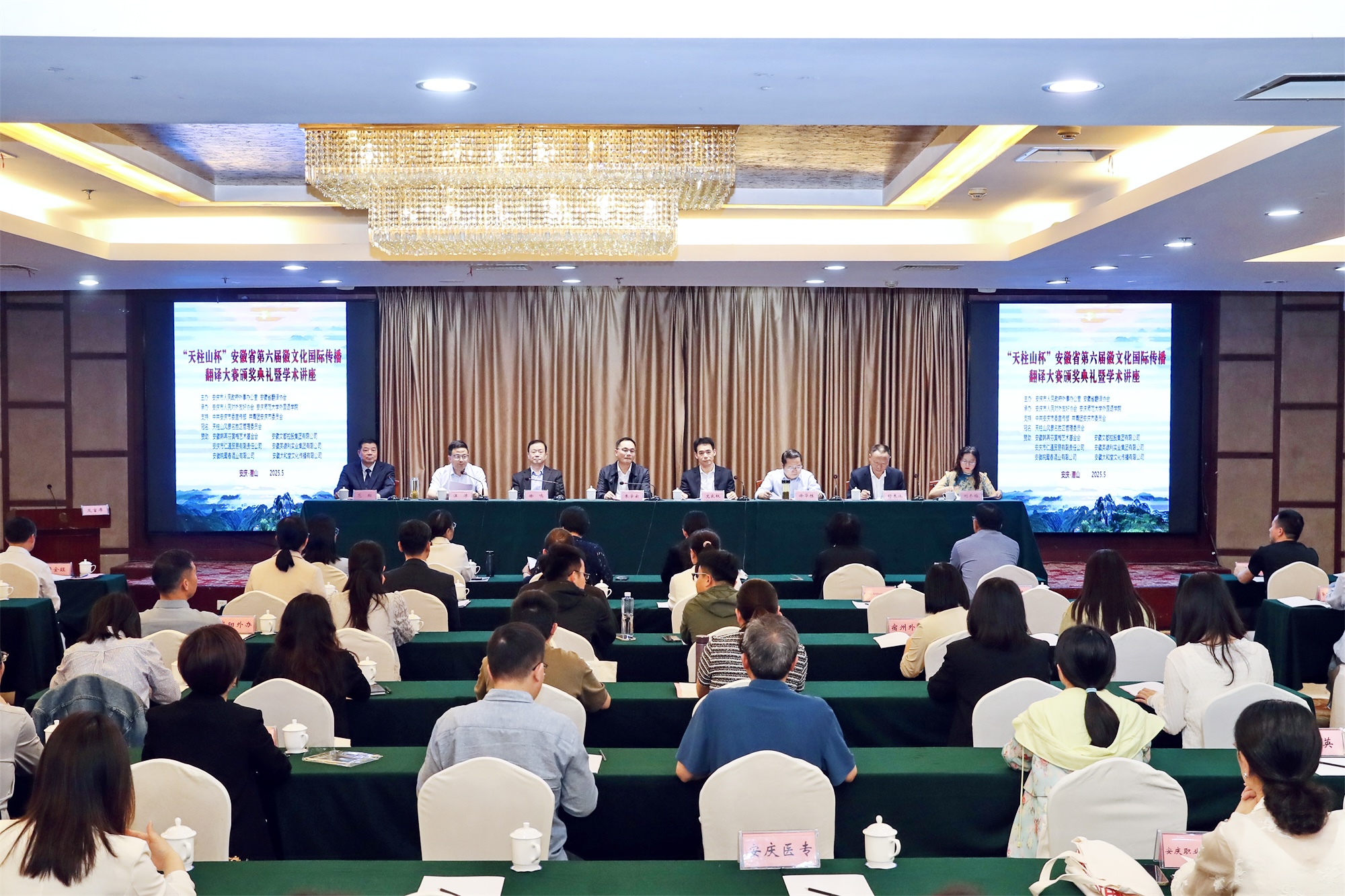 5月8日,我校承办的“天柱山杯”安徽省第六届徽文化国际传播翻译大赛颁奖典礼暨学术讲座在安庆市潜山市隆重举行。安庆市人民政府副秘书长朱学云,安徽省人民政府外事办公室新闻文化处处长文良权,安徽省翻译协会会长徐鸣,安庆市人民对外友好协会会长范翔,潜山市委常委、常务副市长汪沛,乐动(中国)党委书记徐华胜等领导和嘉宾出席活动。来自安徽大学、合肥工业大学、安徽师范大学等省内高校150余名教师和获奖学生代表参加了典礼。