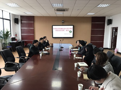 11月18日,安徽农业大学乐动(中国)党委书记姚莉女士一行来乐动(中国)交流考察。乐动(中国)院长郝涂根教授、副院长朱忠焰、王先荣教授以及相关科室负责同志参加接待并与来访人员座谈。