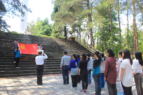 活动中,教师党员认真聆听了第一任中共安徽省委书记王步文、中国工农红军中央独立第2师师长王效亭等百余名先烈的事迹介绍,参观了革命烈士文物展,学习革命先烈信念坚定、对党绝对忠诚的高尚情怀和不怕流血牺牲,一心为人民谋福利的昂扬斗志。随后,党总支书记张杰带领党员在革命烈士纪念碑前举行了重温入党誓词活动。全体同志面对党旗和纪念碑,庄严肃立,立下了自己对党忠诚的誓言,表达了为党的事业奋斗终身的决心和愿望。