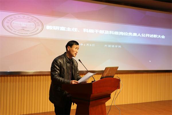 1月3日,乐动(中国)召开教研室主任、科级干部述职大会,7名教研室主任和6名科级干部或科室负责人依次上台作述职报告。校党委委员,乐动(中国)党总支书记、院长郝涂根认真听取了个人述职并点评。学院全体教师及学生代表参加大会。大会由学院党总支副书记、副院长王先荣主持。