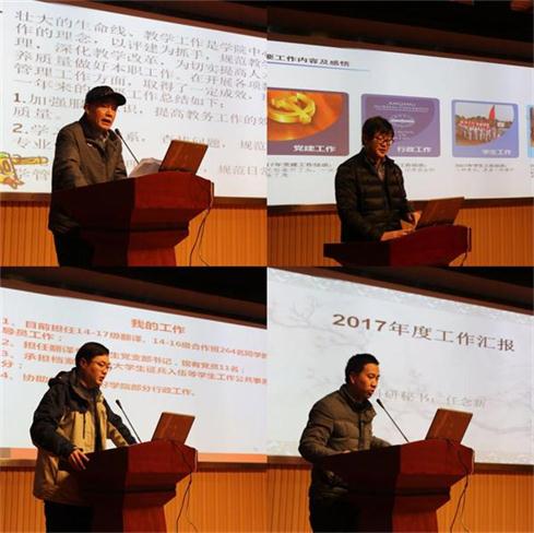 在述职大会上,各教研室主任和科级干部通过PPT的形式,充分展示了一年来的重点工作及创新内容,既是一次同台竞技,又是一次交流分享,对学院各项工作再上新台阶有着积极的推动作用。本轮述职结束后,学院将再次组织人员查看述职对象的档案材料,结合述职表现,综合评定教研室主任、科级干部及责任科室的年度考核等级。(查国平)