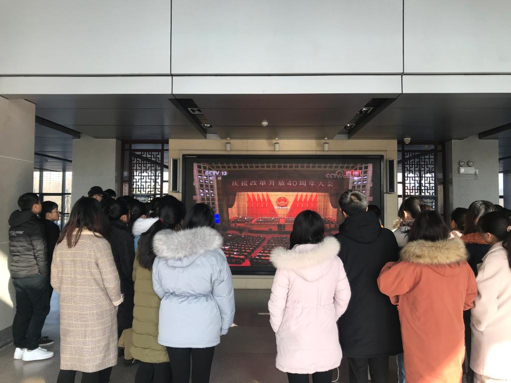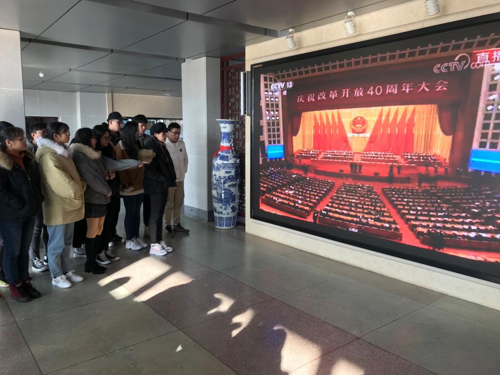 广大同学自发聚集在一楼屏幕前收听收看大会直播