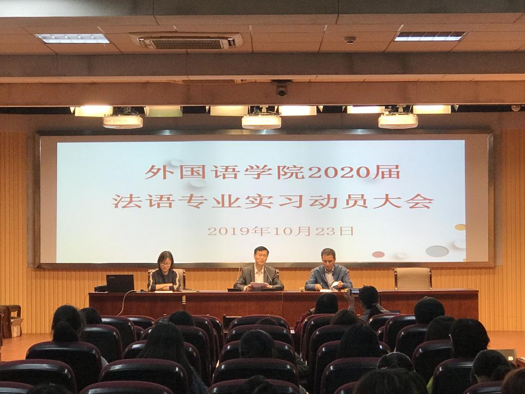 为了使学生进一步了解社会、增强对社会的责任感,更好地实现将大学期间所学的理论与实践相结合, 10月23日,乐动(中国)在E503会议室召开了2020届法语专业毕业生实习动员大会。乐动(中国)主持工作副院长王先荣、副院长江加宏出席了此次会议,法语专业部分教师及2020届法语专业全体同学参加了本次动员大会。