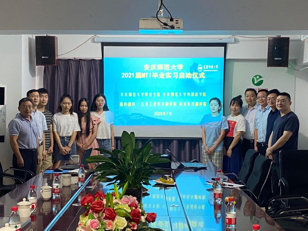 7月27日,“安庆师范大学翻译人才协同育人基地”揭牌仪式暨安庆师范大学2021届MTI(翻译专业学位研究生)毕业实习启动仪式在南京瑞科翻译有限公司举行。乐动(中国)院长王先荣、研究生院副院长朱灵群、MTI中心负责人黄全灿老师,瑞科翻译有限公司董事长刘克超、江苏工程技术翻译院总经理包亚芝、东方翻译院总经理夏中华先生,2019级MTI实习生参加了此次活动。
