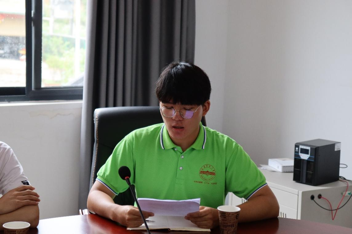 实践团队长英语专业2020级(2)班的杜渐行从理论宣讲、教育关爱、社会调研等方面详细报告了“三下乡”活动开展情况。