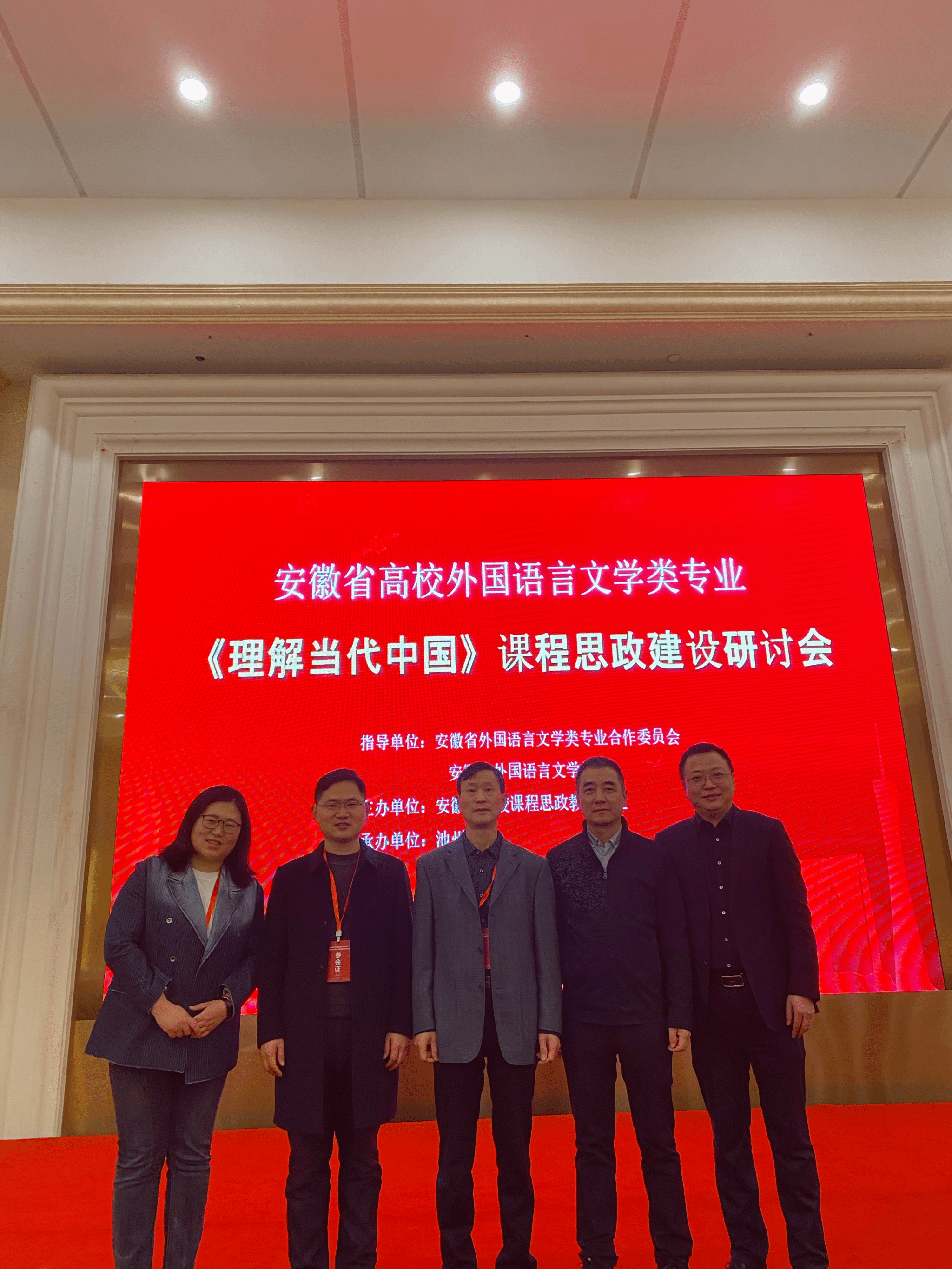 3月11日,安徽省高校外国语言文学类专业《理解当代中国》课程思政建设研讨会在池州举行。来自安徽大学、合肥工业大学、安徽师范大学等省内26所高校的100多名外语类专业教师参加了会议。乐动(中国)院长王先荣、副院长江加宏、黄全灿,翻译专业负责人陈水生和法语专业负责人张默等应邀参加了研讨会。会议由安徽省高校课程思政教育联盟主办,池州学院承办。