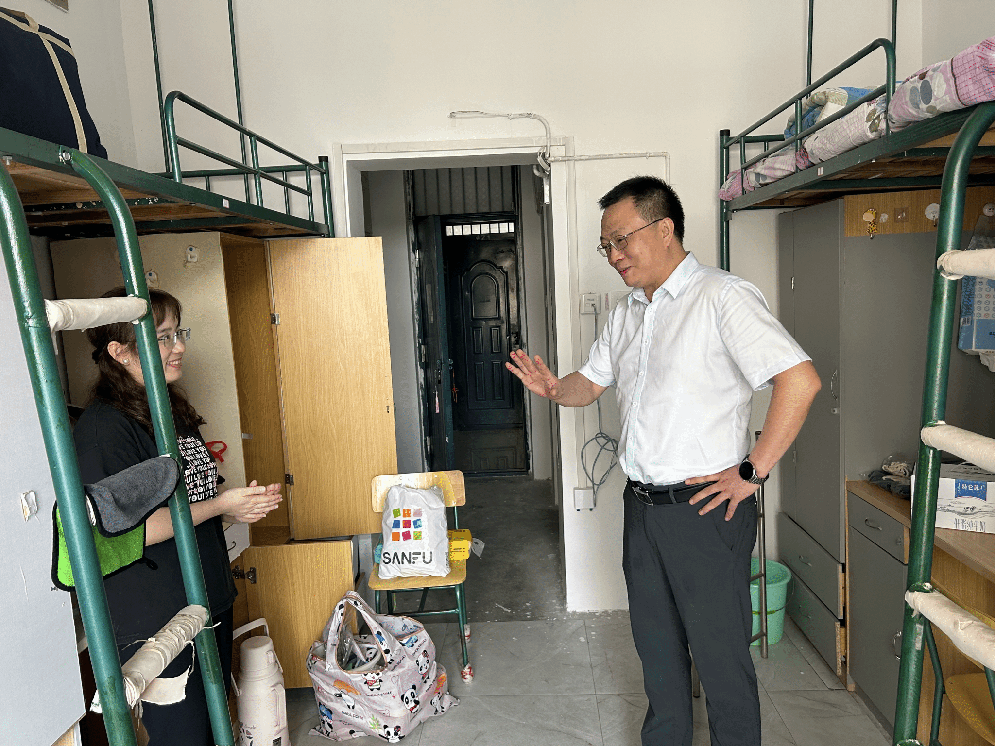 学院领导与新生及其家长进行了亲切的交流,详细了解了新生对于住宿环境的适应情况,叮嘱新生务必管理好宿舍卫生,注意人身安全和财产安全。此外,学院领导逐一检查了新生宿舍的各项基础设施,鼓励新生在四年的大学生涯中要科学规划时间,树立明确的奋斗目标,立鸿鹄之志,脚踏实地,勤学笃行,努力成为新时代德智体美劳全面发展的大学生。