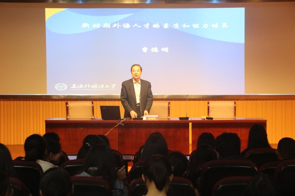 2019年11月28日下午,教育部外指委法语分委员会主任委员、中国法语教学研究会会长、上海外国语大学原校长、博士生导师曹德明教授应邀莅临我校讲学,为乐动(中国)师生作了一场题为“新时期外语人才的素养和能力培养”的学术报告,100余名师生聆听了讲座。讲座由王先荣教授主持。