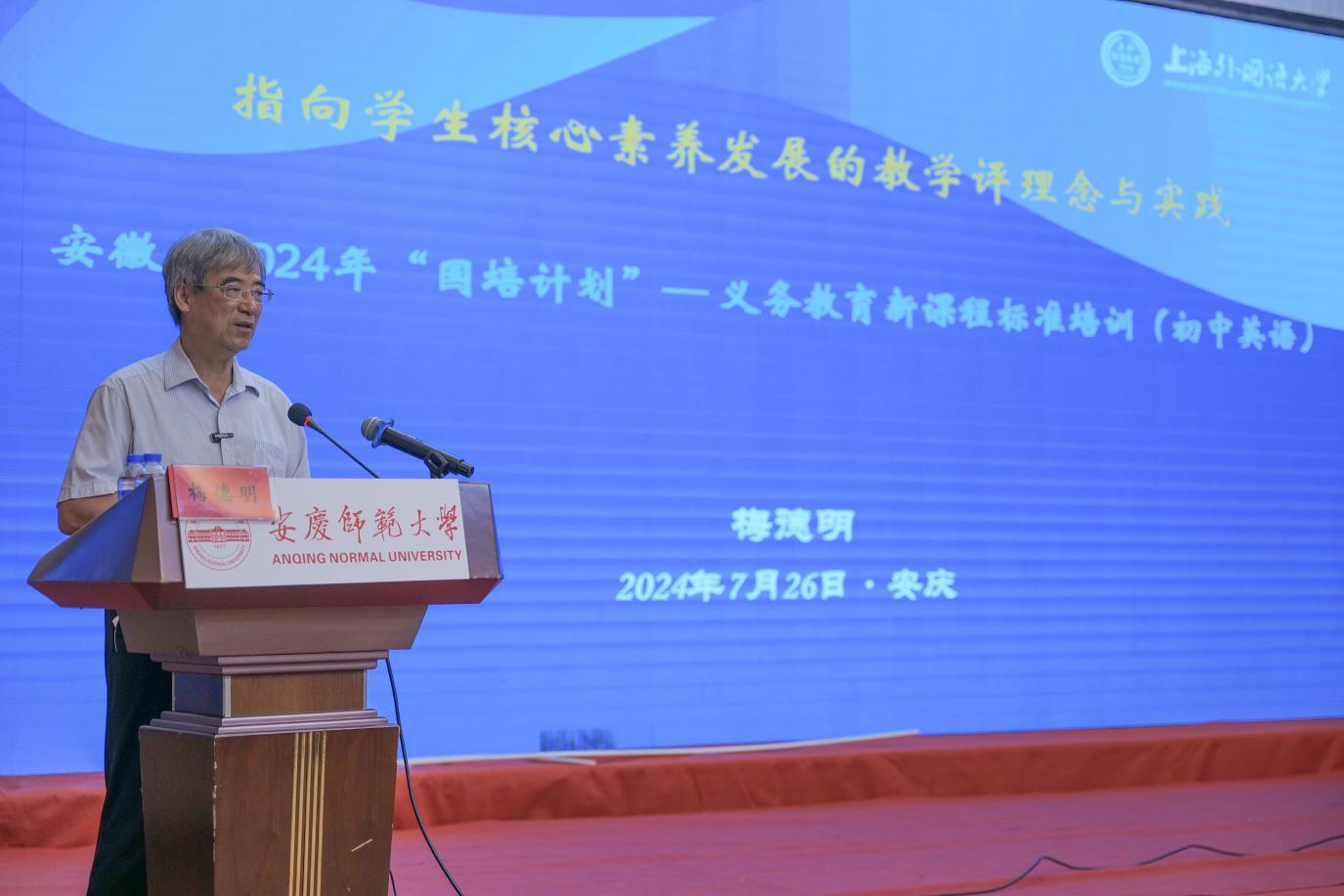 7月26日,教育部义务教育英语课程标准修订组组长、上海外国语大学梅德明教授应邀出席乐动(中国)承办的安徽省2024年“国培计划”中西部项目-义务教育新课程标准培训(初中 外语)开班仪式,并作题为《指向学生核心素养发展的教学评理念与实践》的主旨报告。乐动(中国)部分教师和来自安徽省各地市300名初中英语骨干教师聆听了报告。报告由乐动(中国)院长、该国培项目首席专家王先荣主持。