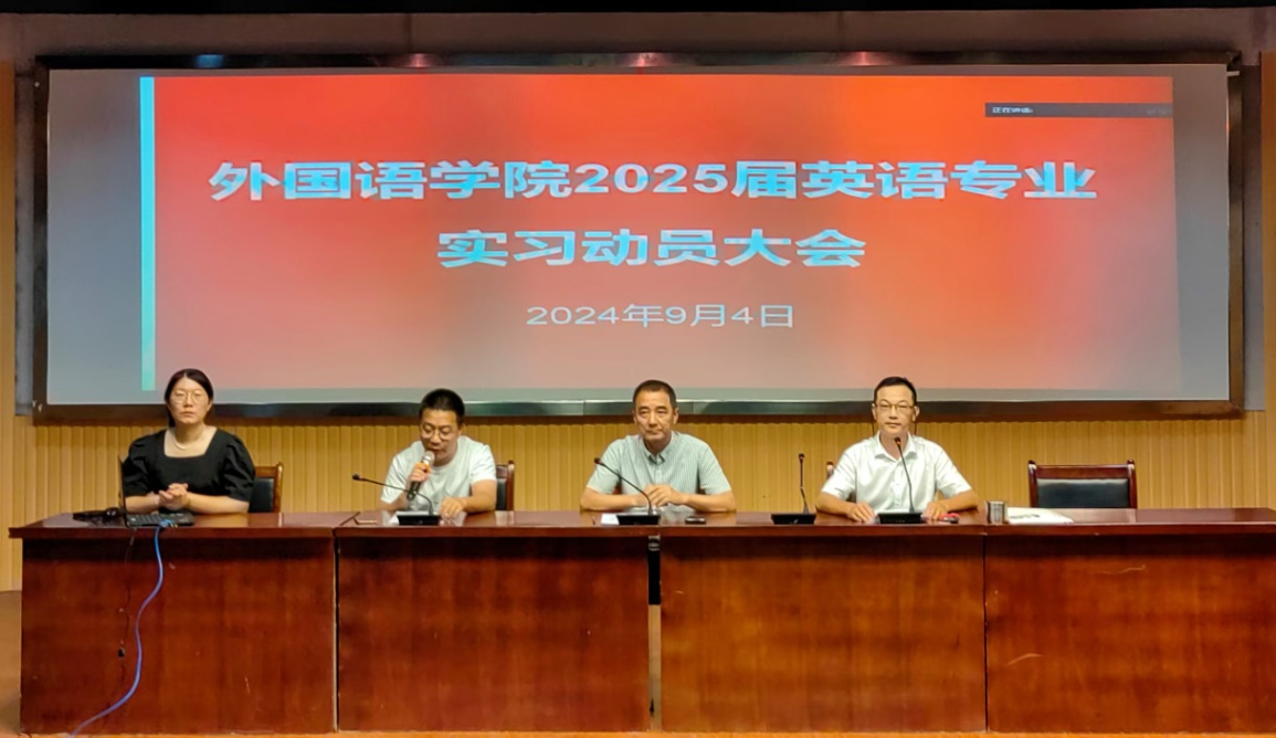 9月4日,乐动(中国)在E503召开了2025届英语专业实习动员大会。副院长江加宏、实习指导教师代表张少云、辅导员代表易惠、教学秘书江松强及英语专业2025届全体实习生参加了会议。