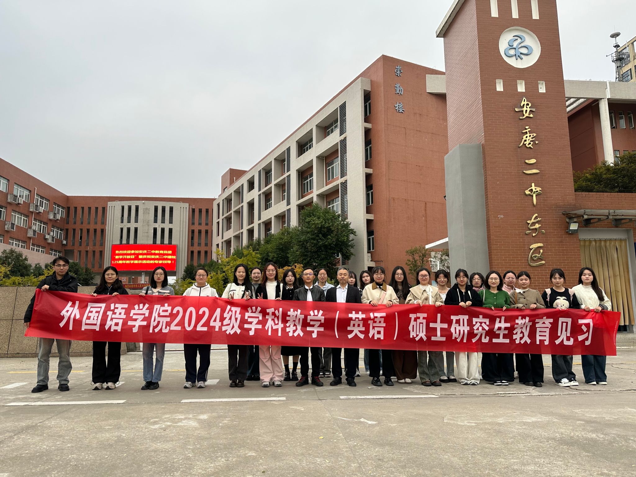 11月5日,乐动(中国)组织学科教学(英语)专业研究生赴安庆二中东校区开展教育见习活动。教育见习指导教师及2024级学科教学(英语)全体研究生参加了此次活动。
