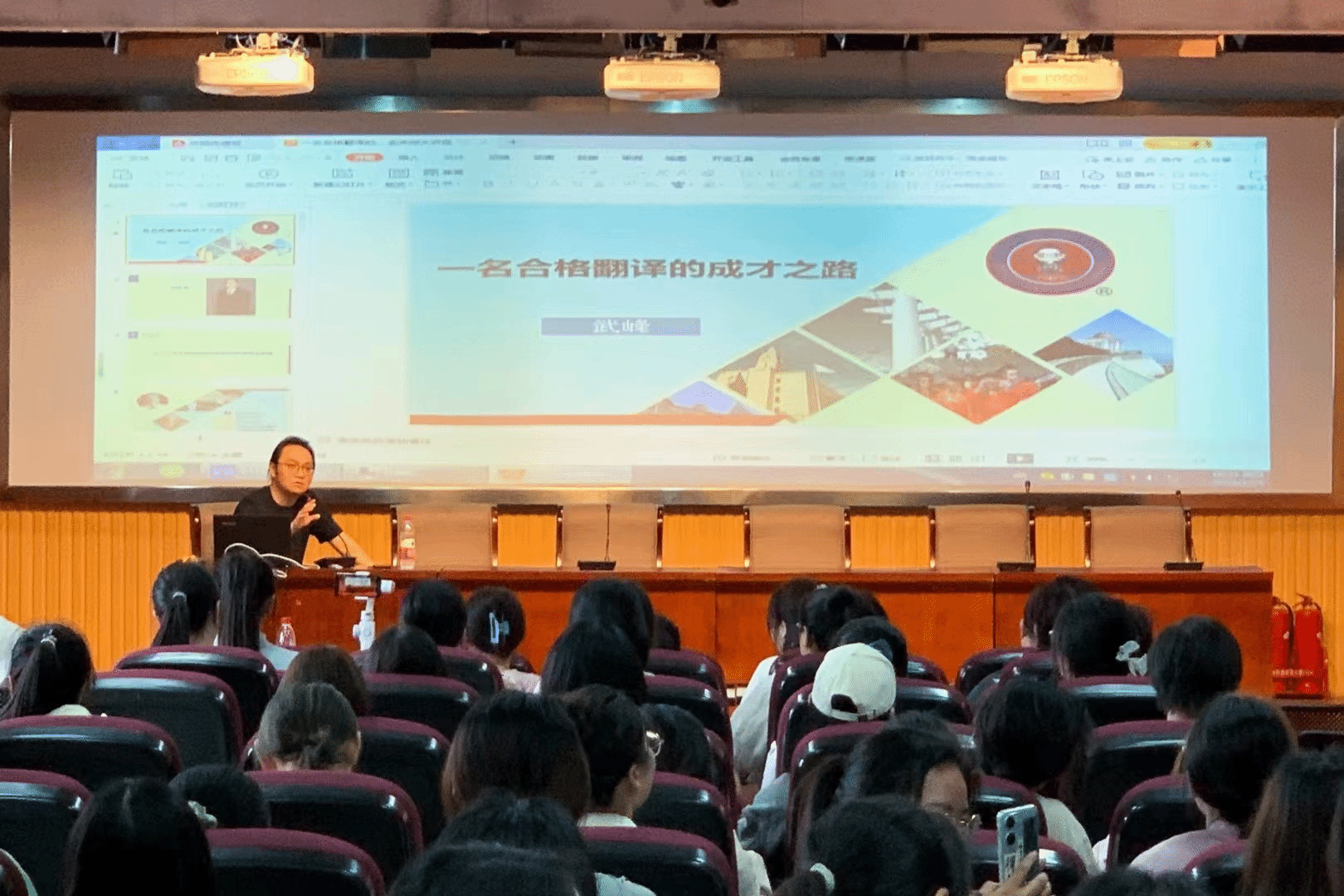 2023年5月25日下午,乐动(中国)“望道”讲坛第四讲在外语楼E503报告厅成功举行。讲坛邀请知名翻译实践专家、美国布朗大学富兰克林学者武峰教授作“一个合格翻译的成才之路”主旨报告。报告由乐动(中国)英语系副主任张少云博士主持,2021、2022级研究生和本科生以及部分教师共计近200人聆听了报告。
