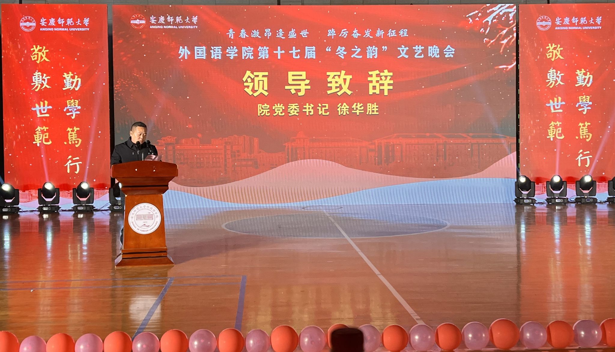 徐华胜在晚会上致辞。他代表学院党政领导班子对莅临晚会进行指导的嘉宾表示热烈的欢迎,对保证晚会顺利举办的所有老师和学生表示衷心感谢!徐华胜全面总结学院2024年的主要工作成果,并指出:近一年学院在党的建设、专业建设、队伍建设以及团学工作方面得到显著加强。希望全院师生携起手来,在新的一年里,锚定目标,踔厉奋发,再创学院人才培养事业新辉煌!