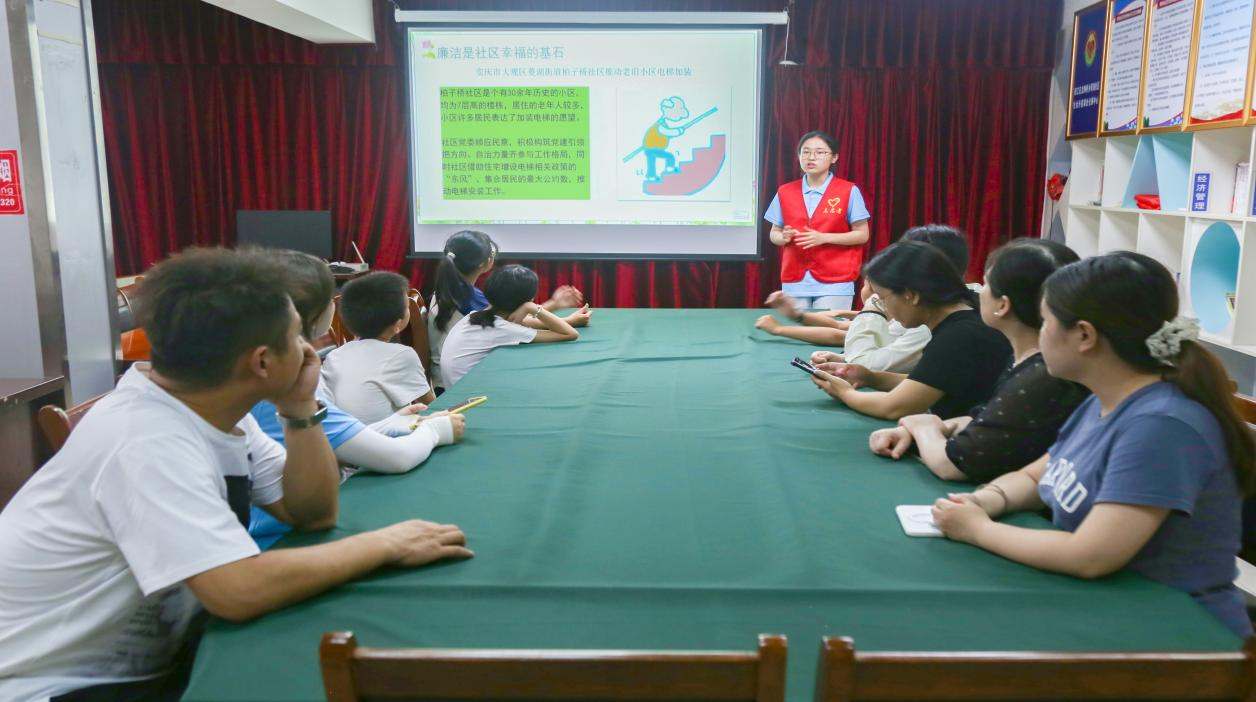 “以前总觉得廉政是‘大人物’的事,今天才明白邻里间不搞人情攀比、垃圾分类带头示范也是廉洁的体现。”社区居民陈叔叔在采访中感慨,“孩子们用动画PPT讲案例,比单纯读文件有意思多了!” 宣讲结束后,团队成员与社区居民展开互动交流,并随机采访了多位居民。雨润社区居委会工作者余先生表示,宣讲团将专业特色与廉政教育结合的形式颇具新意:“特别是‘社区廉政建设成果’板块,展示了我们社区近年来‘小微权力清单’公示、邻里议事会透明化等举措,让居民更直观感受到廉政建设就在身边。”