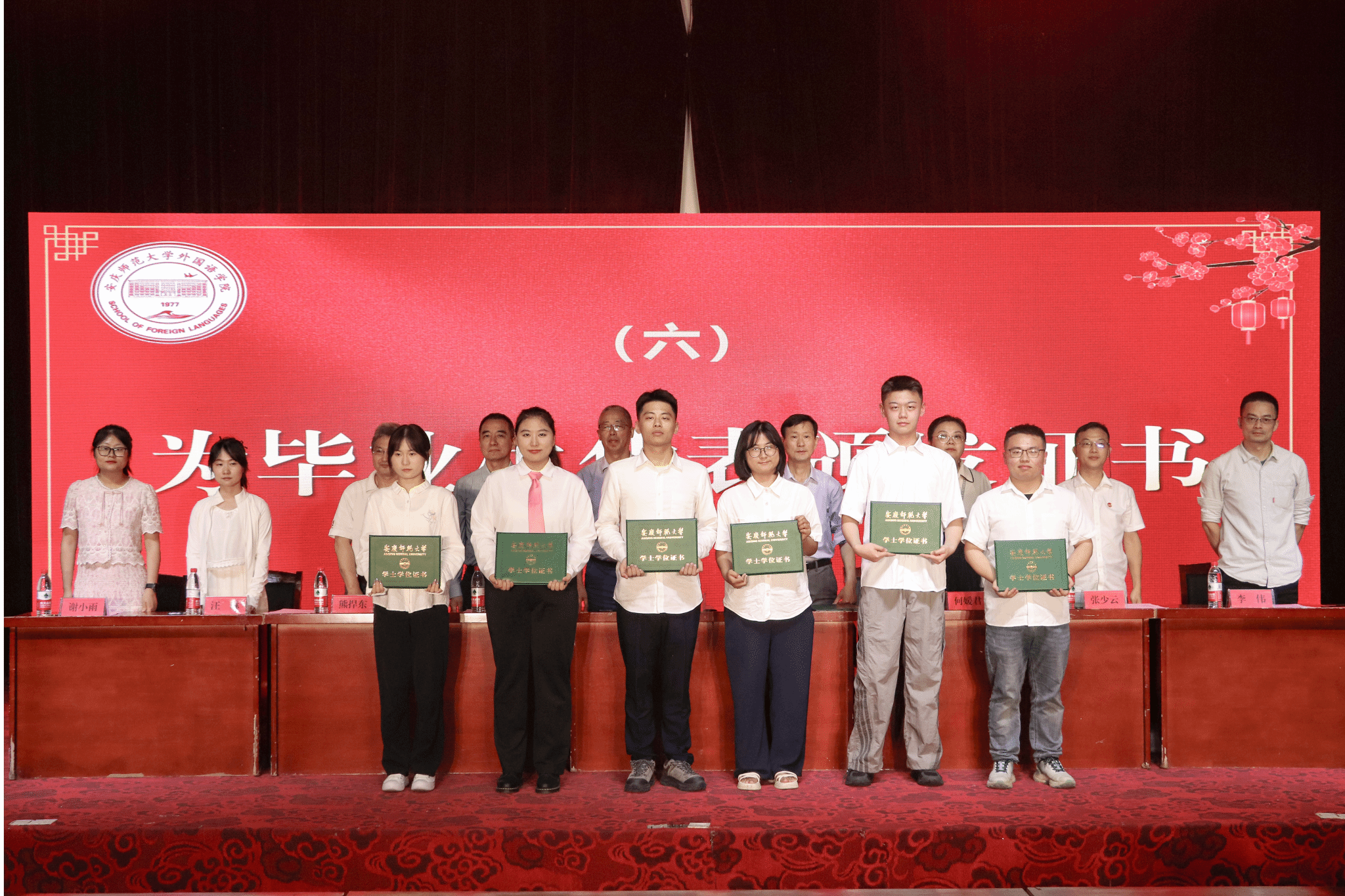 “相逢不恨晚,时间拆不散……”军训照、团建活动照、晚会合照……诸多2024届毕业生照片在电子大屏轮播,伴随着舒缓的音乐,毕业生表彰暨欢送会正式拉开序幕。本次表彰会颁发校友联系人证书,省级、校级优秀毕业生证书,优秀毕业生党员证书,百余名毕业生受到表彰。表彰同时还穿插了歌曲《仰望星空》、情景剧《聚青春之火,燃时代之光》等精彩的节目表演,毕业典礼暨欢送会在全场大合唱《灯火中的中国》的歌声中圆满结束。