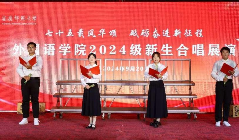 “我爱你中国,亲爱的母亲,我为你流泪,也为你自豪……”9月20日晚,安庆师范大学图书馆东报告厅传来了阵阵嘹亮的歌声,由乐动(中国)举办的“七十五载风华颂,砥砺奋进新征程”新生合唱展演活动在此举行。学院党委书记李亦亮、副院长江加宏等党政领导班子及教师代表出席观看,300余名2024级全体本硕新生参与了此次展演活动。