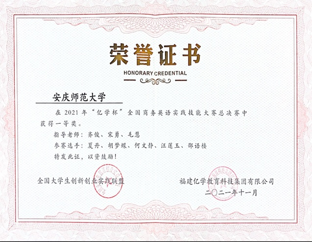 英语专业先后获批为国家级特色专业建设点(2010)、首批国家级一流专业建设点(2019),两次入选省级“卓越英语教师培养计划”项目建设,并于2021年顺利通过教育部师范类专业二级认证。在2022年校友会中国大学英语专业排行榜单中,英语专业位列全国并列第50名,在安徽省高校中与安徽大学、安徽师范大学并列第一;在安徽省外国语言文学类专业评估中,英语专业获A+等次,法语专业获B等次。商务英语专业获批为省级综合改革试点专业(2015),翻译专业获批为省级品牌专业(2017)。